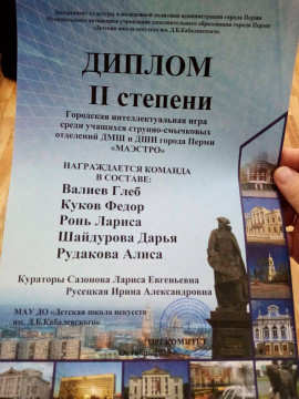 Участники конференции, заинтересовавшись формой проведения мероприятия, предложили ДШИ им. Д. Б. Кабалевского провести интеллектуальную игру «Маэстро» для всех школ искусств Перми.